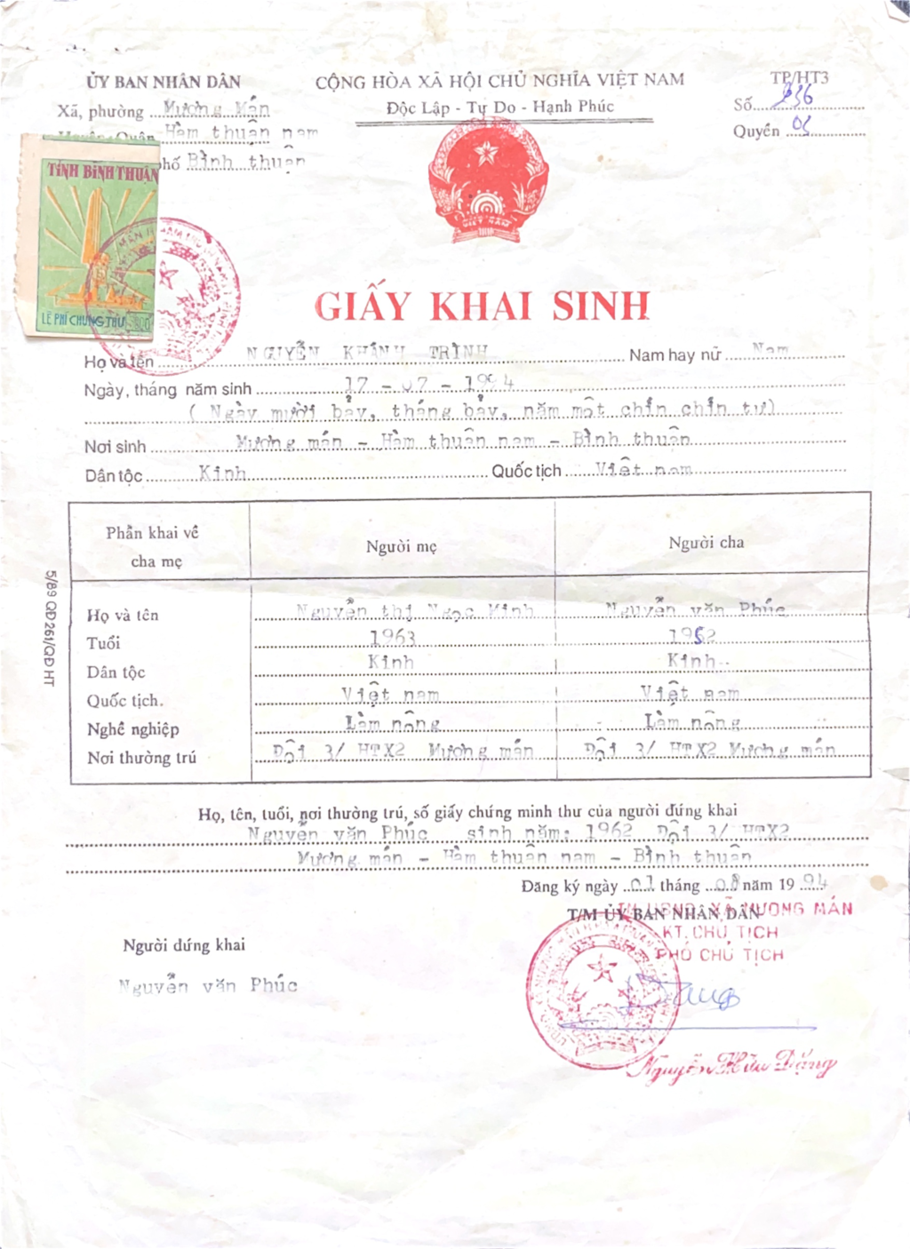 Chào đời: ngày 13.7.1994