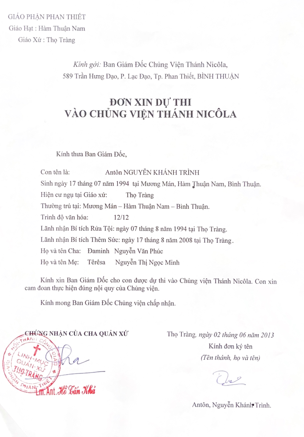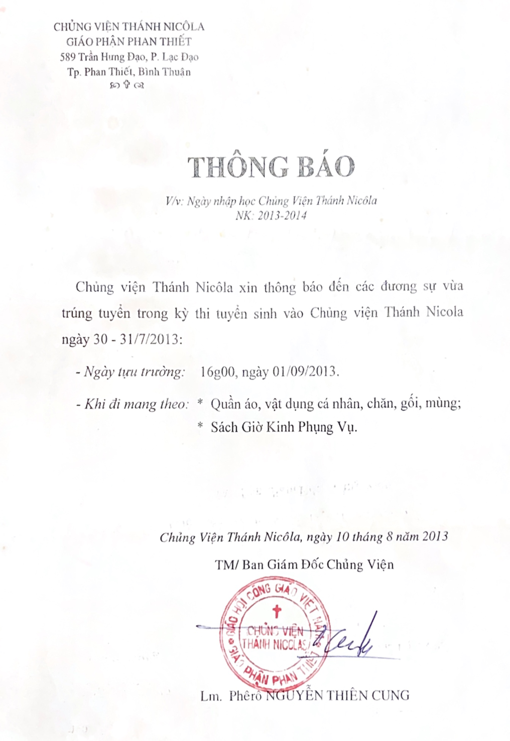 Nhập Chủng viện Thánh Nicôla Phan Thiết: Ngày 01.9.2013 – Bắt đầu hành trình đời tu