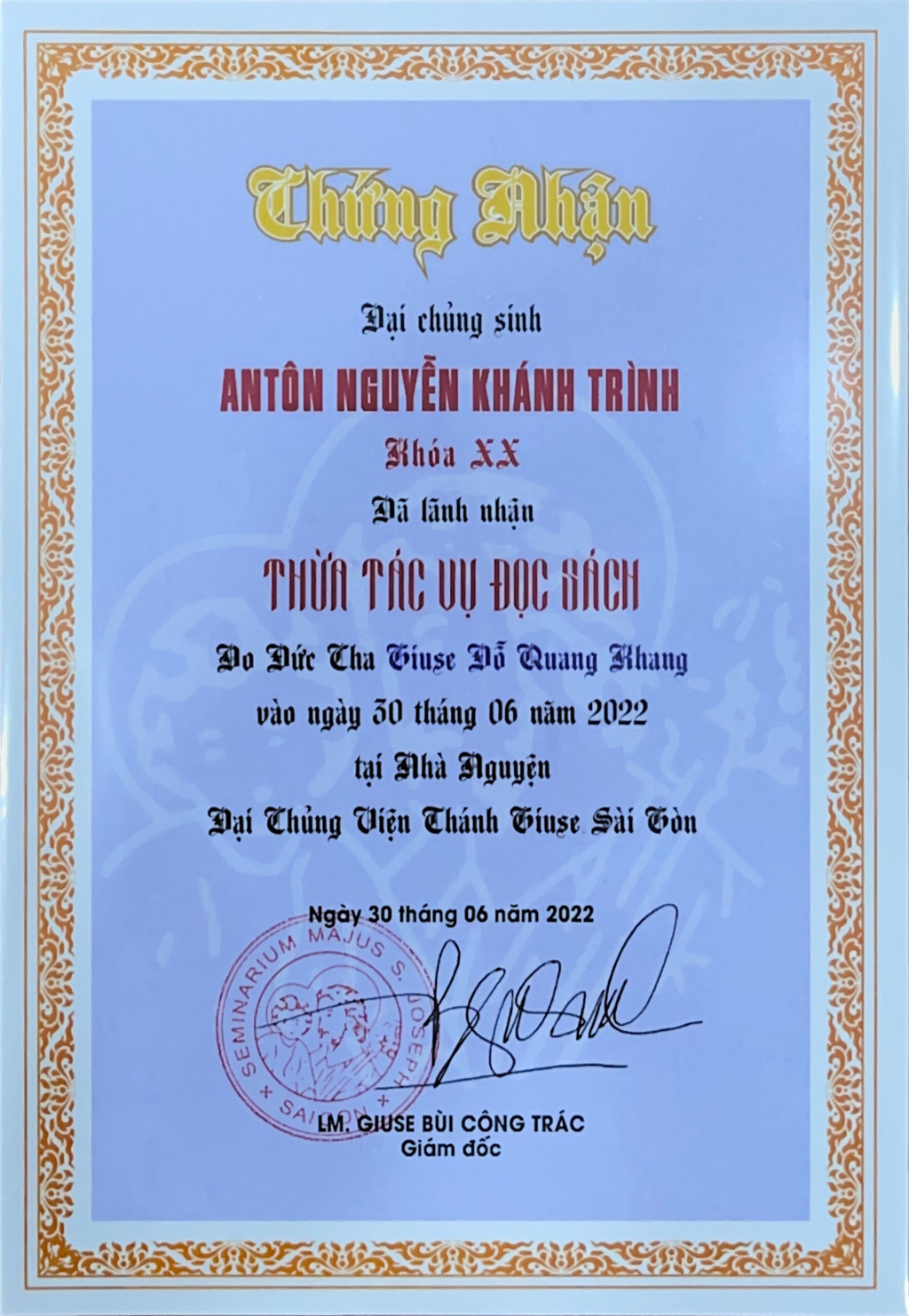 Chúc mừng Tân Linh Mục Antôn Khánh Trình, chúc Cha luôn mạnh khoẻ, tràn đầy hồng ân Thiên Chúa trên hành trình mới ạ. Hẹn gặp Cha ngày đặc biệt nhé.