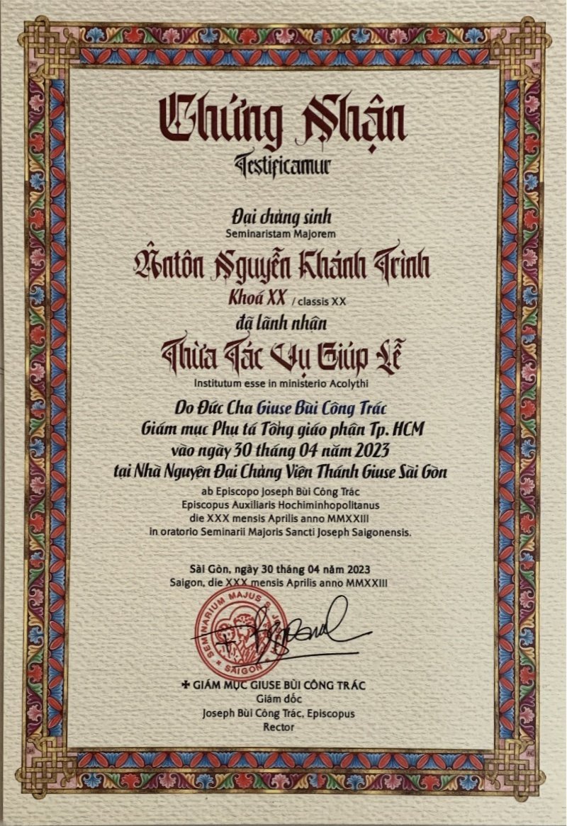Nhân dịp 4/12 là 1 ngày cực kỳ đặc biệt, ghi dấu cho 1 hành trình đầy cố gắng và hy sinh của Cha, con xin chúc Cha thật nhiều sức khỏe, luôn tràn đầy hồng ân Chúa ban và hoàn thành tốt sứ vụ mà Thiên Chúa giao phó ạ. Chúc mừng Tân Linh mục Anton Nguyễn Khánh Trình ❤️🔥dạ hết ạ